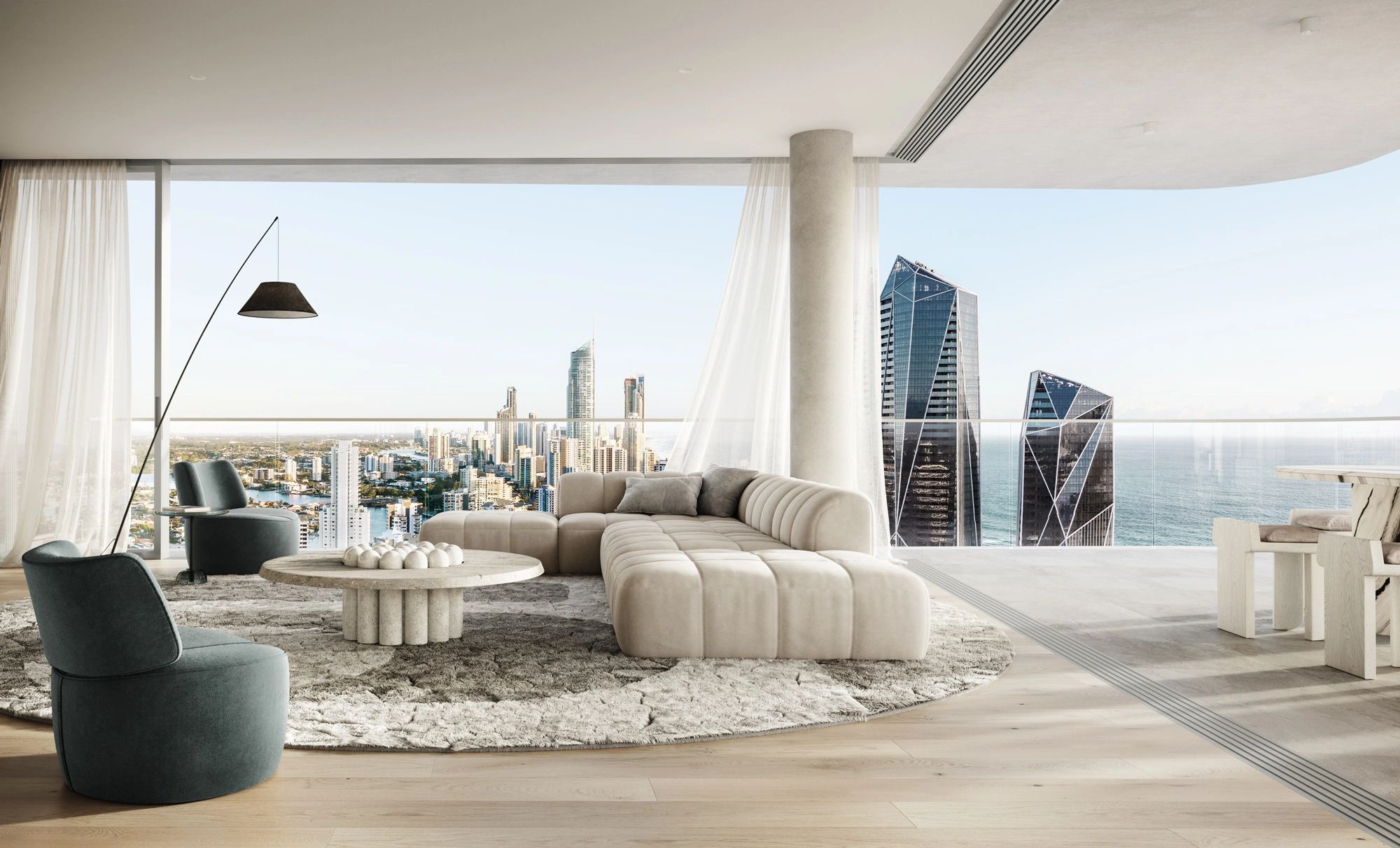 一号大道十九号是一套位于冲浪者天堂与宽滩交界处的奢华整层公寓,提供动感十足的海景享受